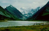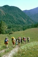 Ein- oder zweimal kommen uns russische Touristen bzw. Alpinisten entgegen. Wir fragen, wie weit es noch zum See ist. Die Antwort lautet jedesmal, wie auch schon am Vorabend an unserer Zeltstelle: Noch etwa ein Tagesmarsch !