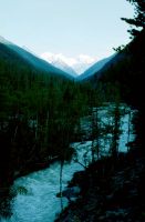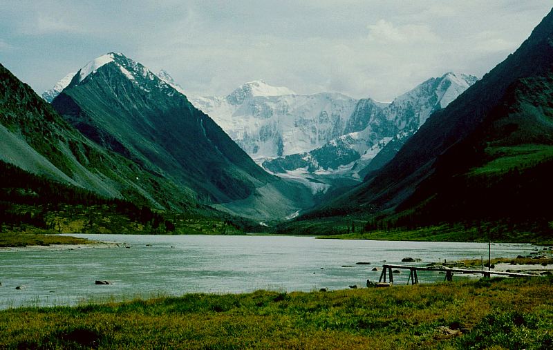 In der untergehenden Sonne fotografieren wir den schneebedeckten Belucha-Kamm und beobachten die Wolken, deren Form aus unserer bisherigen Erfahrung auf Wetterverschlechterung schließen läßt. Dies macht uns aber keine direkte Sorge; wir wähnen uns bereits dicht am Akkemsee.