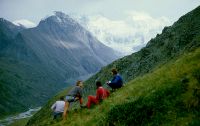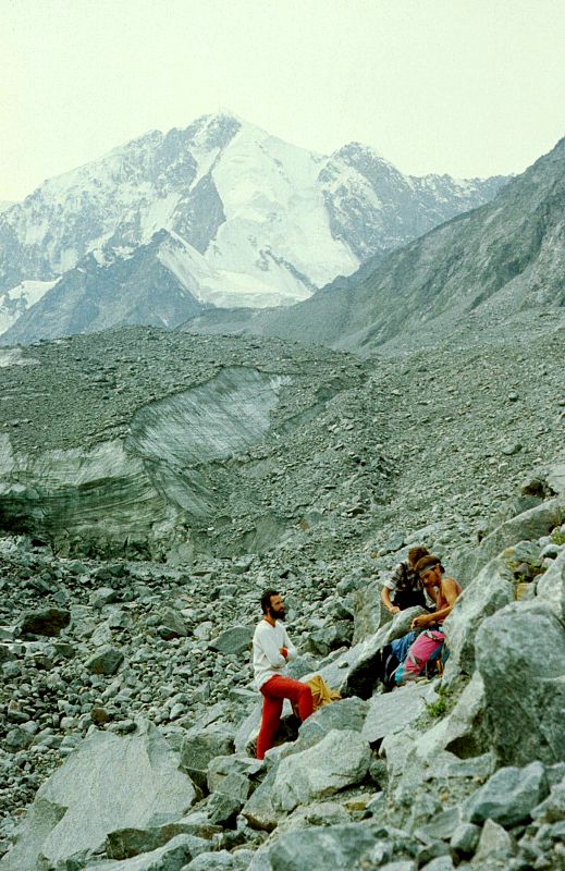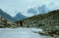 und dann in einem Tagesmarsch über einen Paß ins Katun-Tal und zur Moräne des Katun-Gletschers (1.Lager).