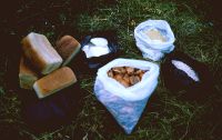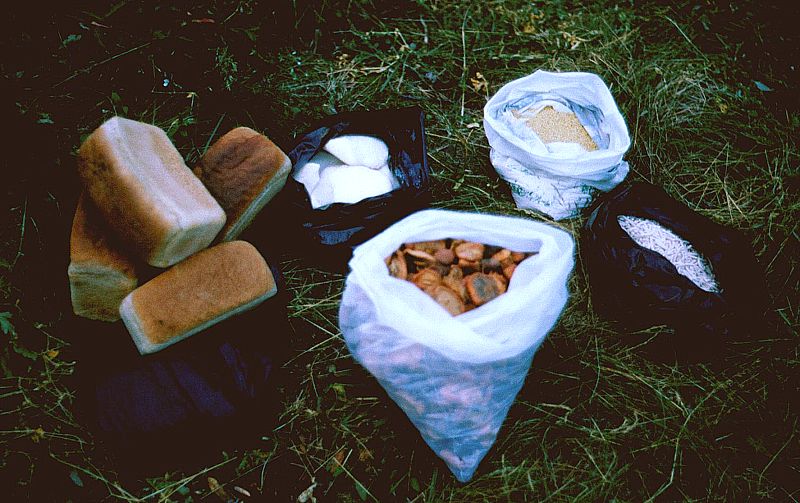 Angesichts unserer knapper werdenden Vorräte beschließen wir, die Möglichkeiten des Erwerbs von Nahrungsmitteln im Lager zu erkunden. Letztendlich schließen wir ein Tauschgeschäft ab: Für eine Salami, die wir noch in Reserve hatten, bekommen wir 4 Kastenbrote und je eine große Tüte Hirse, Trockenobst, Nudeln und Zucker. Damit, so hoffen wir, ist die Verpflegung für die nächste Zeit gesichert.
