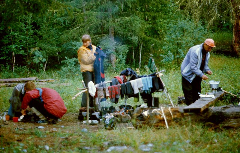 Inzwischen hat der Regen aufgehört und wir können Socken und Hosen am Lagerfeuer zum Trocknen