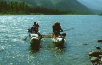 Gebaut sind sie für zwei Mann, die außerdem zur Vorsicht immer dicke Schwimmwesten tragen.