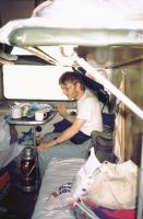 Der nächste Tag verging mit Museumsbesuch und Stadtbummel, und am darauffolgenden Morgen hofften wir nun endgültig auf die Fahrkarten. Bis nachmittags wurden wir aber vertröstet und saßen in der Vorhalle herum, gegen 16:00 Uhr waren dann auf einmal doch unsere Fahrkarten für denselben Abend da. Trotzdem wir nur "HardSleeper"-Karten hatten, wurden wir bis zur Abfahrt um etwa 23:00 Uhr im 1.Klasse-Warteraum geduldet und fuhren pünktlich (endlich !) wieder in Richtung Osten ab.