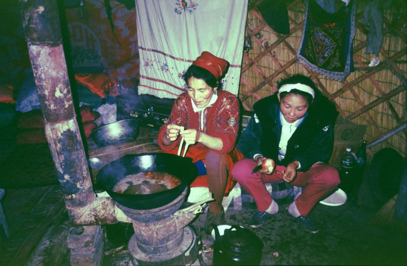 Abends in der Jurte gab es Reis mit Kraut. Wir haben uns richtig sattgegessen und anschließend so lange gefaulenzt, daß uns die Reiselektüre auszugehen drohte. So hatten wir auch Zeit, uns über Land und Leute zu belesen.