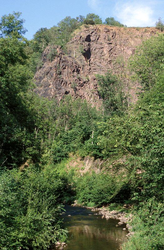 die Pechsteinklippe ihrem Namen entsprechend aus Pechstein.