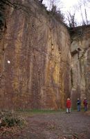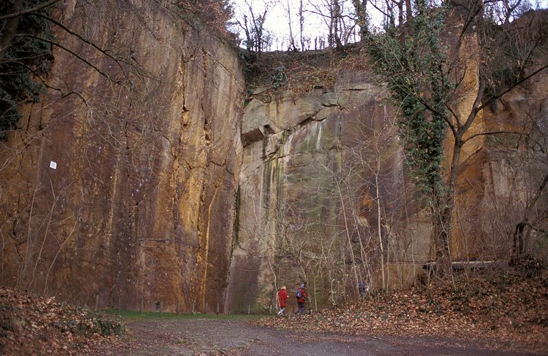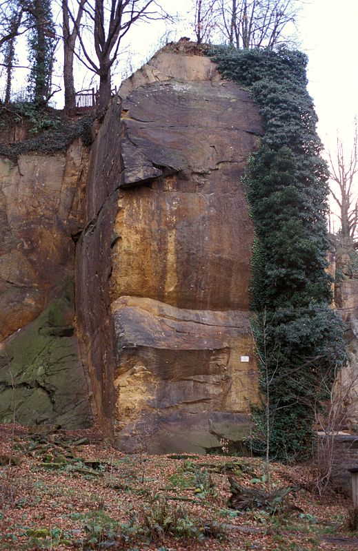 Der sehr feste und glatte Sandstein in diesem ehemaligen Steinbruch wurde künstlich etwas griffiger gestaltet.
