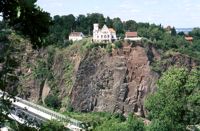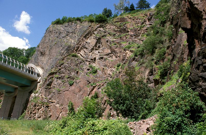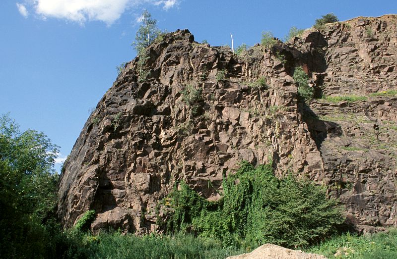 Mehrere ehemalige Steinbrüche künden hier vom früheren Abbau des Monzonit-Gesteins.