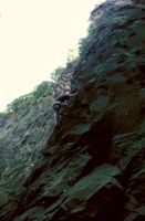 Das Gestein ist insgesamt recht fest, aber zum Teil etwas grün,