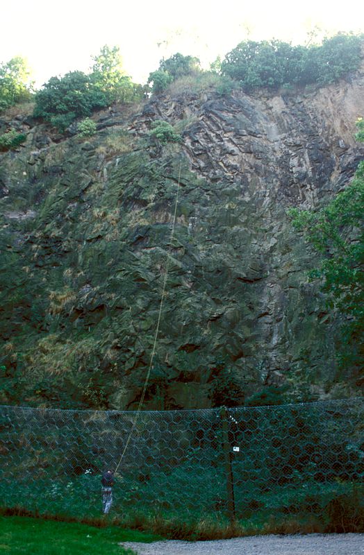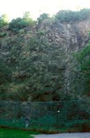durch den Haupteingang*) und dann ganz rechts hinter den Schutzzaun zur Felswand.