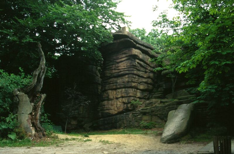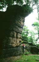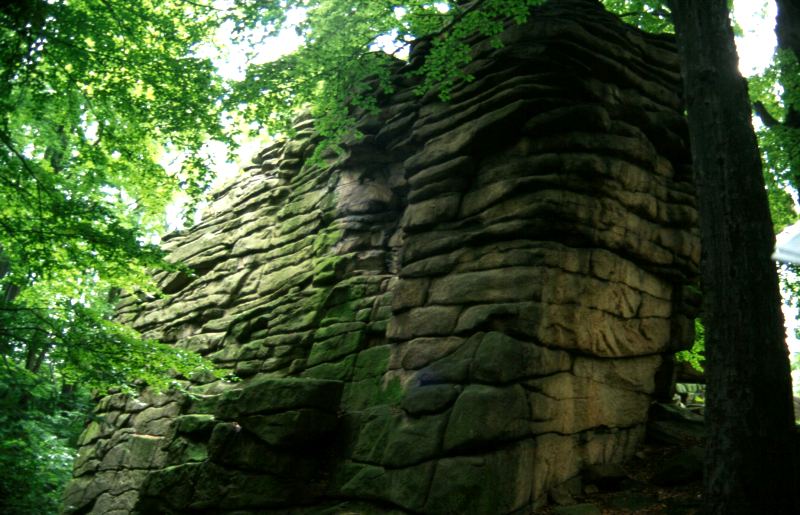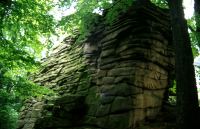Gruppe von vier Kletterfelsen auf dem Hochstein direkt gegenüber der Gaststätte und eines Aussichtsturmes.