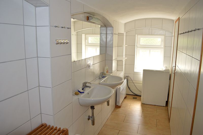 - Bad mit Warmwasser und 2 Waschbecken, WC mit Waschbecken, Dusche mit Waschbecken, Pissoir